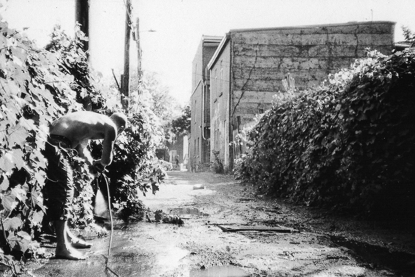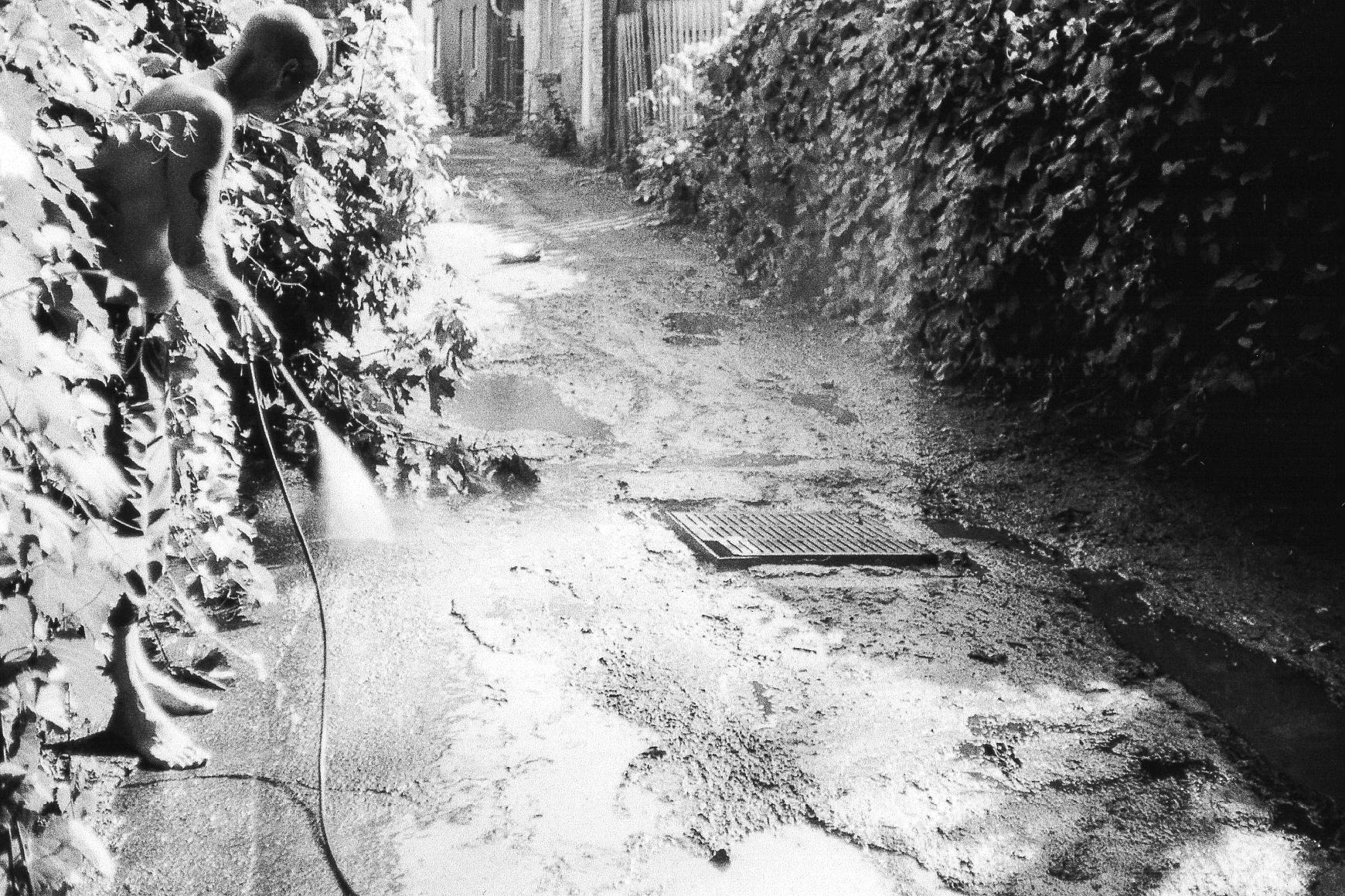 My edit and sequence consist of 20 black-and-white photographs, the selection of which was based on the Mayor cleaning our back alley, the variety of ways in which I photographed him, his environment, and my physical presence throughout the process through my body’s relationship with the Mayor (being up close to being distanced to being removed and photographing him from my patio door).